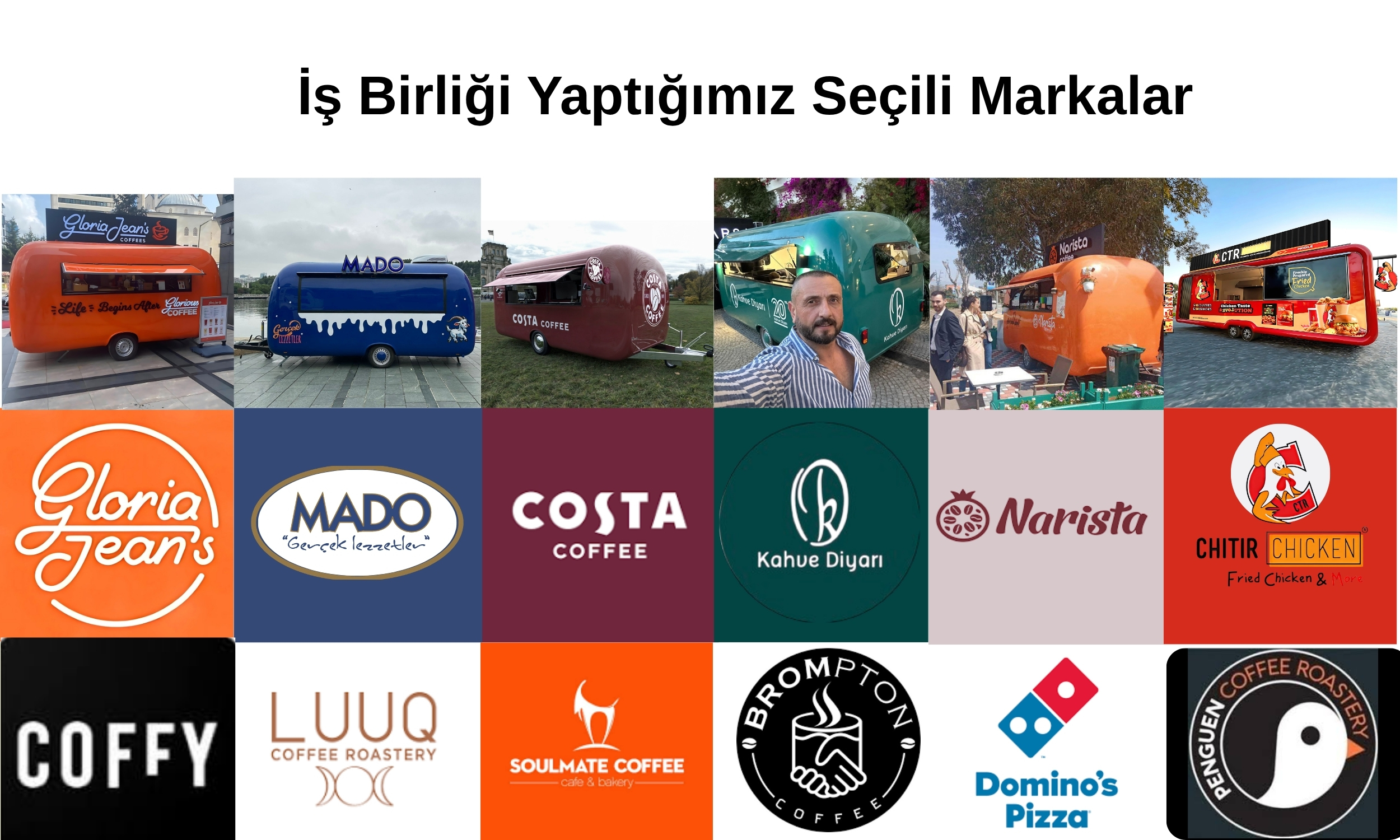 FM-B olarak; Kendi markasını kurmak isteyen girişimciler, Zincir restoranların mobil şube yatırımları, Belediyeler ve organizasyon firmalarıyla çalışıyoruz. Her müşterimize özel çözümler sunarak farklı sektörlere özel mobil araçlar geliştiriyoruz.